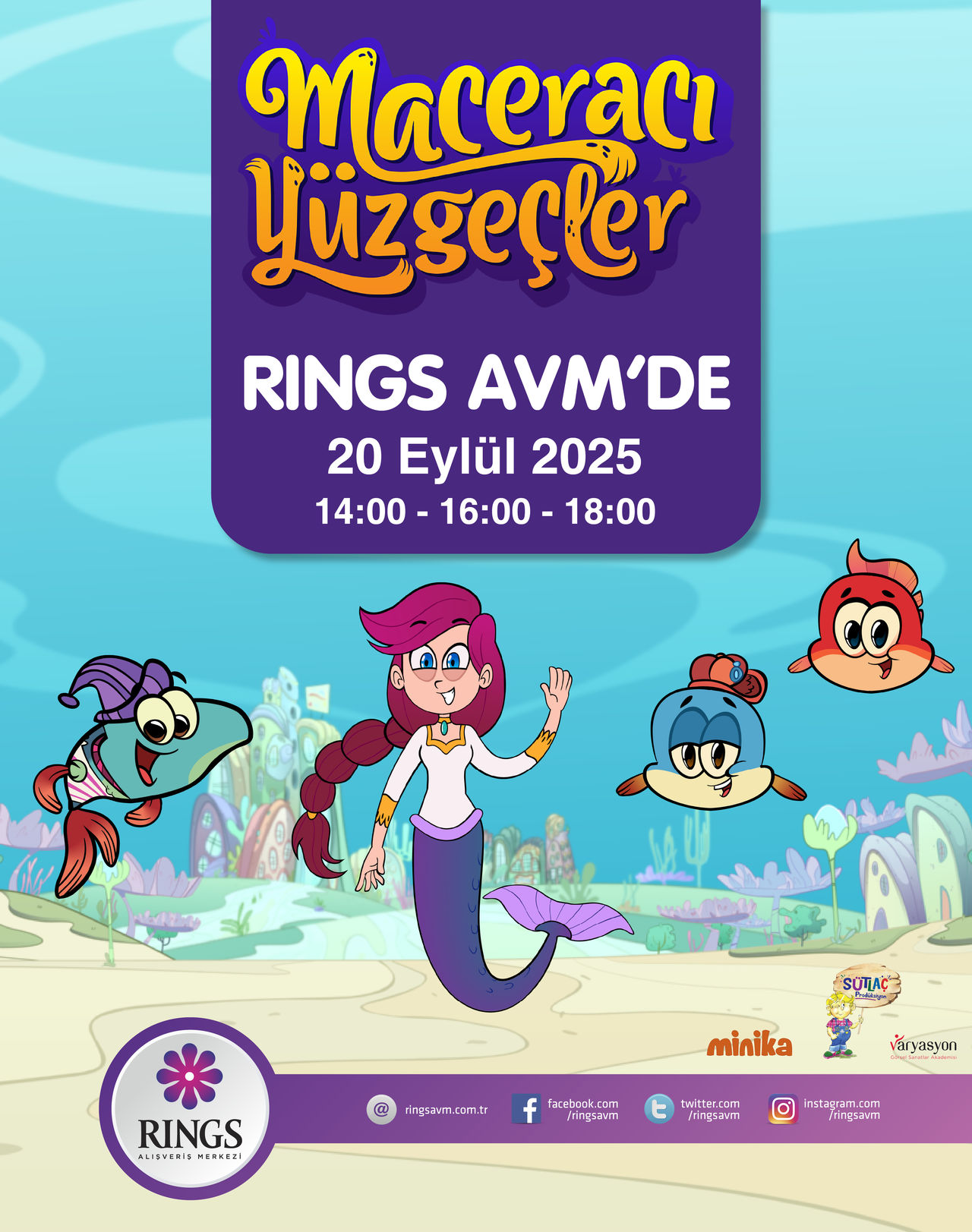 Sevilen çizgi film karakterleri Maceracı Yüzgeçler 20 Eylül Cumartesi günü Rings’te.